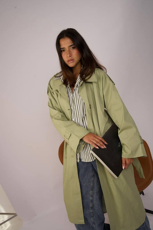 Step into timeless elegance with our Sage Green Trench — soft, warm, modest and effortlessly chic. Perfectly lined for cozy comfort and a polished look all season long.”